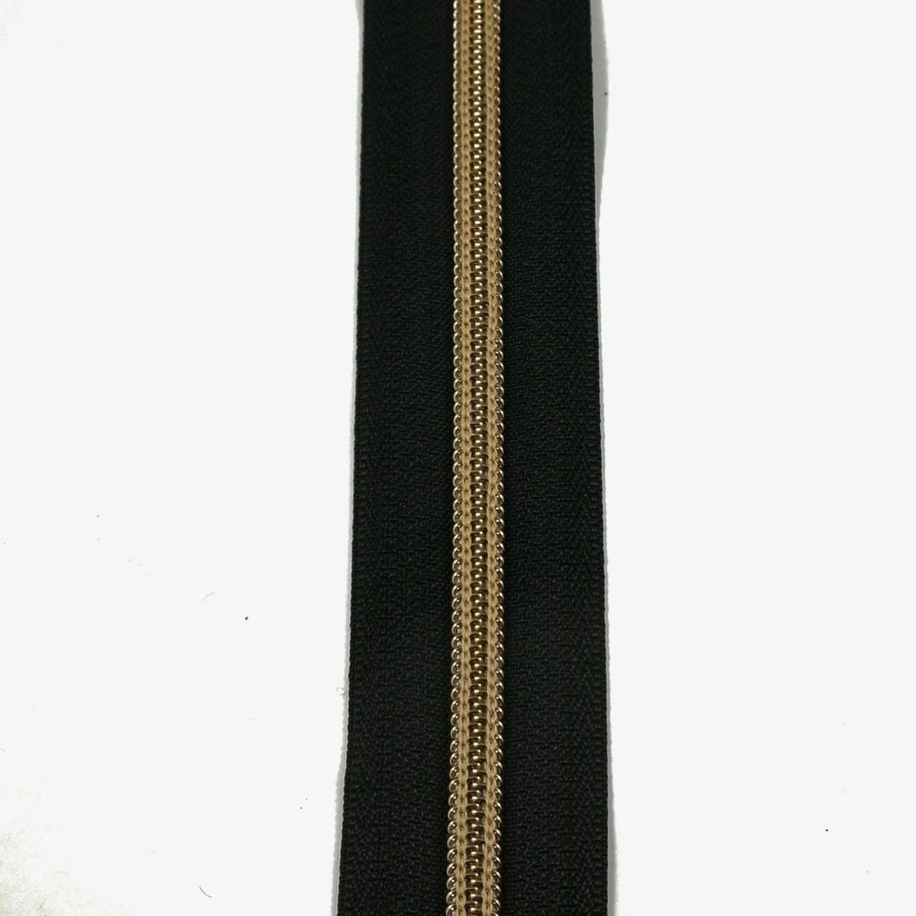 #5 Emmaline Zippers-by-the-Yard 3yds Black Antique Brass Teeth # EBZP5BLK3AB