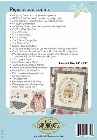 From Birdhouse Patchwork Designs By Bird, Natalie In Quilts A 12-part quilt featuring heartfelt messages and sentiments for a daughter, friend, loved-one, celebrating living life to the fullest. The quilt uses applique, embroidery, EPP and piecing techniques, and finished size is 64"x74". Pattern includes instructions for the full quilt, broken down into 12 parts, with full size embroidery and applique templates. Printed Paper Pattern Finished Size: 64in x 74in Final Product: Quilt Paper Templates Included Technique Used: Applique / English Paper Piecing / Hand Embroidery / Stitchery / Standard Machine Sewing Skill Level: Confident Beginner