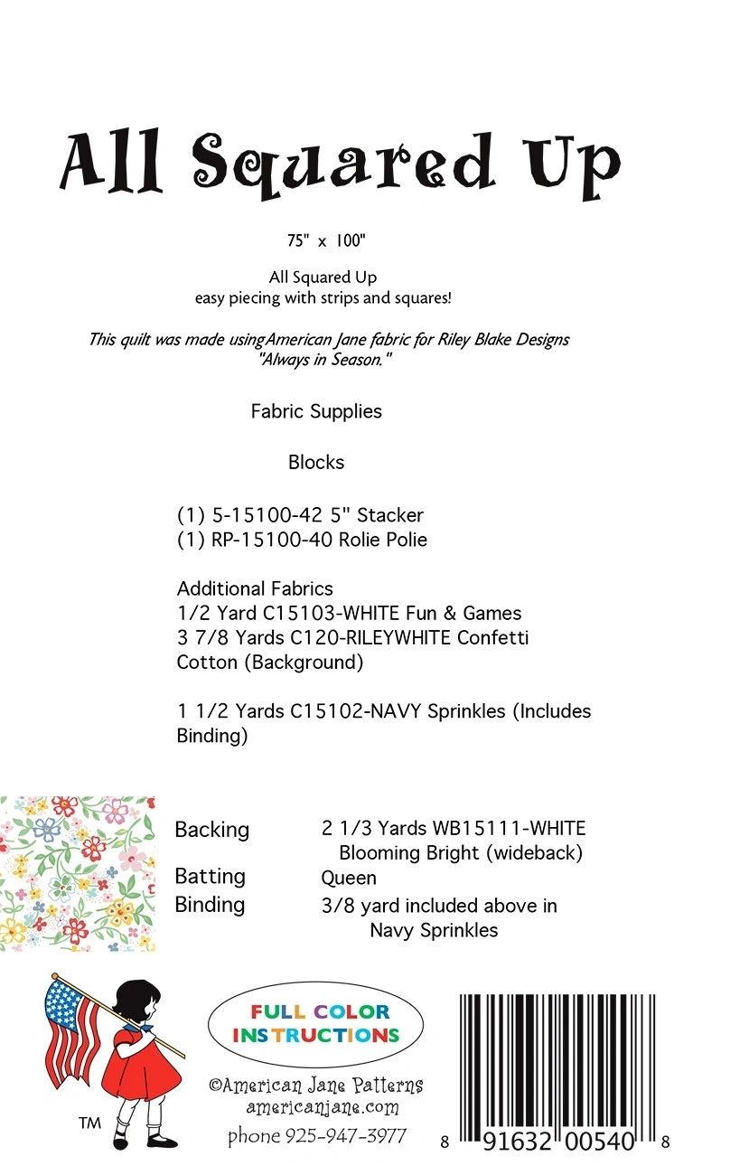 75” x 100” All Squared Up by American Jane uses 2-1/2” strips and 5” stacker twin size friendly and 3-7/8 yds light background