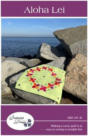 From Southwind Designs By Ornelas, Annette In Quilts Full Color Pattern. Scrap friendly! 4 sizes and 5 settings. Aloha Lei features a Lei Flower Block in two sizes: 18½" square and 12½" square used for bonus quilt. Use the larger blocks for the Lap and Bed size quilts, use the smaller blocks to make a bonus Wall-hanging. The Lei Flower Block uses dimensional curves and can be used in a multitude of different layouts. Use yardage, fat quarters and even pre-cuts to for the bright squares. This block is a great scrap buster and can be cut extra fast due to the multiple same size squares. Use a rotary cutter or use your favorite cutting system. Printed Paper Pattern Finished Size: 31in x 31in Final Product: Quilt Technique Used: Peeled Back Patchwork Skill Level: Confident Beginner