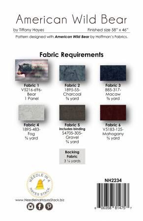 From Needle In A Hayes Stack By Hayes, Tiffany In Quilts Featuring American Wild, a Hoffman Spectrum Digital Print collection. A stunning combination of a striking panel, traditional blocks and an earthy wood grain border…all meant to be. Quilt finishes at 58" x 46".