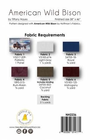 From Needle In A Hayes Stack By Hayes, Tiffany In Quilts Featuring American Wild, a Hoffman Spectrum Digital Print collection. A stunning combination of a striking panel, traditional blocks and an earthy wood grain border…all meant to be. Quilt finishes at 58" x 46".
