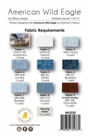 From Needle In A Hayes Stack By Hayes, Tiffany In Quilts Featuring American Wild, a Hoffman Spectrum Digital Print collection. Fly high with this perfect combination of a revered symbol of America and a distinguished border design. Quilt finishes at 60" x 48".