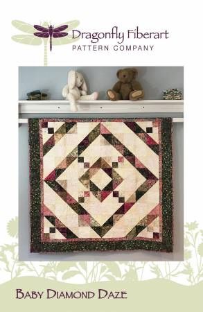 From Dragonfly Fiberart By Michaels, Susan In Quilts Baby Diamond Daze pattern card 5-1/2in x 8-1/2in printed two sides color. Finished size 48in x 48in. Easy to kit using 5in precut squares and yardage. Great class for showcasing half square triangles.