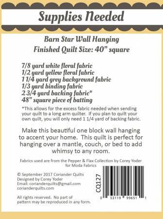 From Coriander Quilts By Yoder, Corey In Quilts Make this beautiful 1 block 40in square Barn Star wall hanging to accent your home. This quilt is perfect for hanging over a mantle, sofa, or bed to add whimsy to any room.