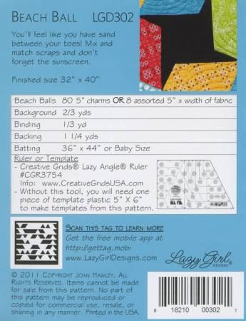 From Lazy Girl Designs - Joan Hawley By Hawley, Joan and Herman, Julie In Quilts You’ll feel like you have sand between your toes! Mix and match scraps and don’t forget the sunscreen. Finished size: 32” x 40”. Made with the Jumbo Lazy Angle Ruler, LGD 902. Charm square friendly. Printed Paper Pattern Finished Size: 32in x 40in Final Product: Quilt PDF Downlaodable Templates Technique Used: Standard Machine Sewing Skill Level: Beginner