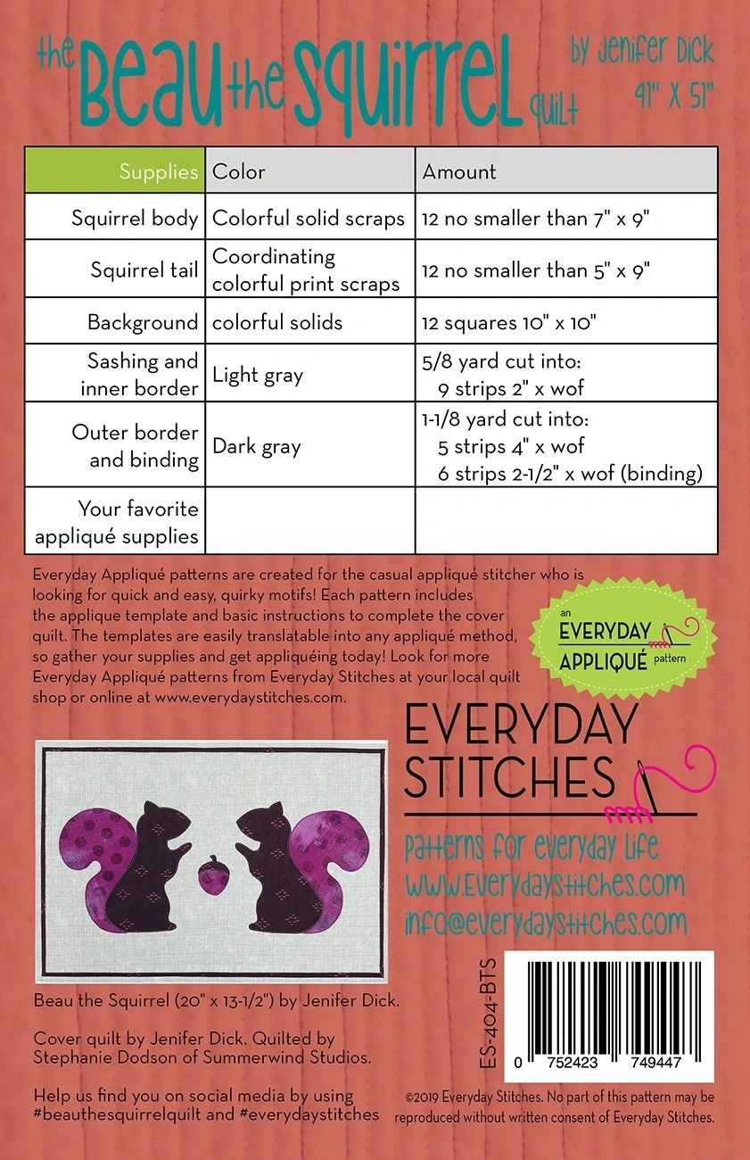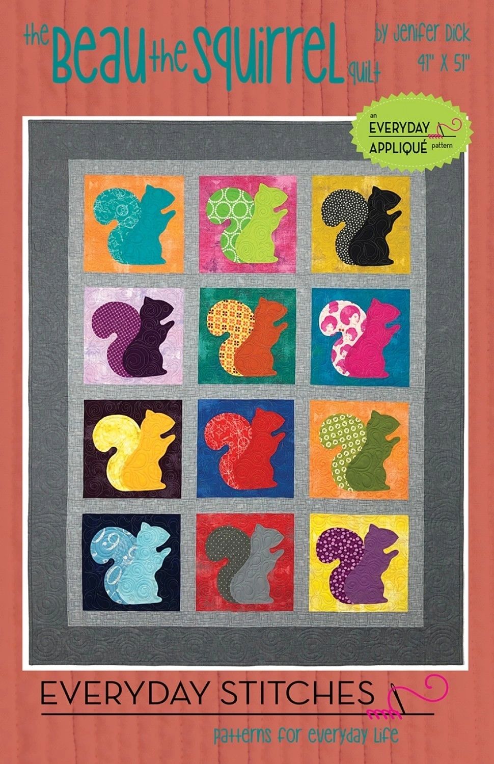 From Everyday Stitches In Quilts Pair your favorite bright prints with coordinating solids to create this charming squirrel quilt! When appliquéd on a bright background, you have the perfect, fun gift for your favorite squirrel lover!