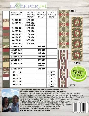From Lavender Lime Quilting By Skomp, Kathy In Table Toppers, Runners & Placemats 6 Quick Runners for the table, bed, buffet or chest. Each just needs a few fabrics and will go together so quickly. Author: Kathy Skomp Publish Date: 2020 Softcover