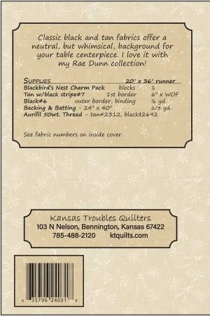 From Kansas Troubles Quilters By Hagmeier, Lynne In Quilts Birds on a Wire Kit To Quilt #24031 (20" X 36" runner) Classic black and tan fabrics offer a neutral, but whimsical, background for your table centerpiece. I love it with my Rae Dunn collection Printed Paper Pattern Finished Size: 20in x 36in Final Product: Quilt Technique Used: Standard Machine Sewing Skill Level: Confident Beginner