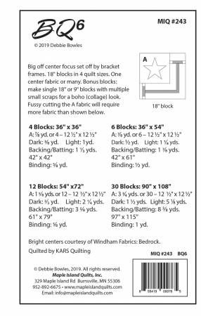 From Maple Island Quilts By Bowles, Debbie In Quilts Big off center focus set off by bracket frames. 18 inch blocks in 4 quilt sizes; 36x36, 36x54, 54x72, 90x108. One center fabric or many. Bonus blocks: single 18 inch or 9 inch blocks with multiple fabrics for a boho collage look.