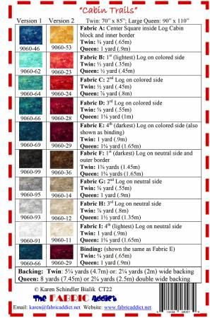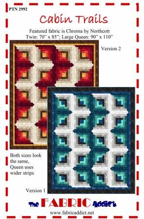 From Fabric Addict By Schindler, Karen In Quilts Cabin trails quilt pattern. Unique spin on Log Cabin layout. Two sizes; Queen, Twin. Both sizes look the same - they use different size strips. Twin is sized for Quilt of Valour. Easy to piece. Printed Paper Pattern Finished Size: 70in x 85in & 90in x 110in Final Product: Quilt Technique Used: Standard Machine Sewing Skill Level: Confident Beginner