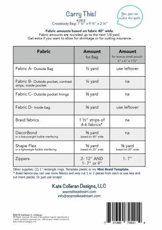 From Kate Colleran Designs By Formerly Seams Like A Dream and Colleran, Kate FB111324 Collection In Bags, Purses, Totes & Electronic Covers Cross body bag with two outside pockets and one inside pocket.