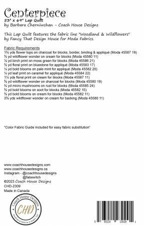 From Coach House Designs By Cherniwchan, Barbara In Quilts Lap quilt with 4 large blocks. The pitchers and stems are pieced and the flower heads are appliqued. Use with traditional fabric colors to create a folk art look or bright colors or black and whites to create a more modern look. Printed Paper Pattern Finished Size: 53in x 69in Final Product: Quilt Technique Used: Standard Machine Sewing Skill Level: Intermediate
