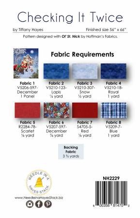 From Needle In A Hayes Stack By Hayes, Tiffany In Quilts Santa arrives with joyful gifts in this classic and sentimental panel and border combination. Quilt is designed featuring Ol' St. Nick's Arrival, a Hoffman Spectrum Digital Print. Quilt finishes at 56" x 66". Printed Paper Pattern Finished Size: 56in x 66in Final Product: Quilt Technique Used: Standard Machine Sewing Skill Level: Confident Beginner