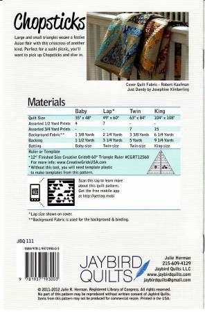 From Jaybird Quilts By Herman, Julie In Quilts 49in x 60in cover Quilt with other size options Uses Creative Grids CGRT12560 12-1/2in Triangle 60 Degree