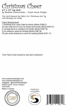 From Coach House Designs By Cherniwchan, Barbara In Quilts 61" x 70" Christmas lap quilt featuring Christmas Eve fabric line by Lella Boutique. Uses a layer cake and depicts pieced wreaths, trees and friendship stars Printed Paper Pattern Finished Size: 61in x 70in Final Product: Quilt Technique Used: Standard Machine Sewing Skill Level: Confident Beginner