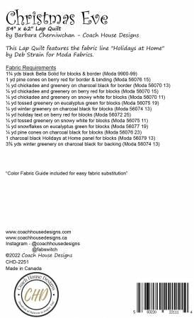 From Coach House Designs By Cherniwchan, Barbara In Quilts 54" x 62" Christmas quilt feature the charcoal black panel from Deb Strain's Holidays at Home fabric line. The panel blocks are framed and surrounded by 4-color stars on a black background. Printed Paper Pattern Finished Size: 54in x 52in Final Product: Quilt Technique Used: Standard Machine Sewing Skill Level: Confident Beginner