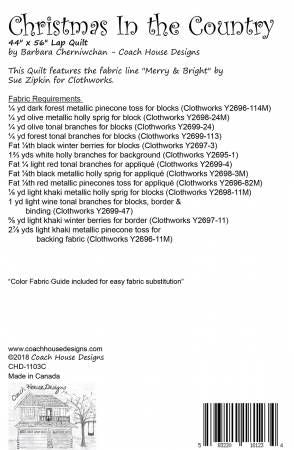 From Coach House Designs By Cherniwchan, Barbara In Quilts 44" x 56" Lap Quilt/Wall Hanging featuring Merry & Bright by Sue Zipkin for Clothworks. This is an updated version of an earlier pattern. Pattern includes a quilting template.