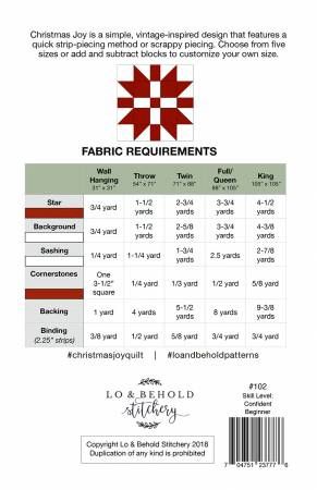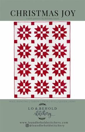 From Lo & Behold Stitchery By Lloyd, Brittany In Quilts Christmas Joy is a reflection on the nostalgic traditions of Christmas. It is a 12 page booklet that includes instructions for using your scraps, or yardage. There are five sizes, Wall Hanging (31" x 31"), Throw (54" x 71") Twin (71” x 88”), Full/Queen (88” x 105”), and King (105” x 105”). Since this pattern is block-based, you can easily add or subtract blocks to customize the size. Skill Level: Confident Beginner