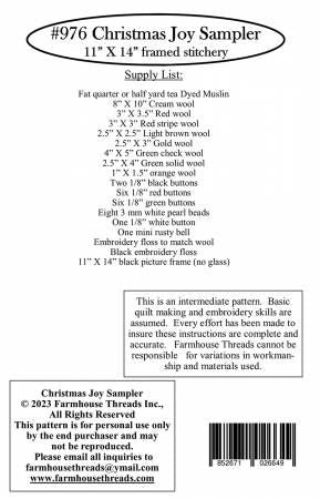 From Farmhouse Threads Inc By McCray, Rhonda In Wall Hanging Wool applique and hand embroidery on cotton with button and bead embellishments. Framed in a standard black 11" X 14" picture frame Printed Paper Pattern Finished Size: 11in x 14in Final Product: Wall Hanging Paper Templates Included Technique Used: Wool Applique / Hand Embroidery Skill Level: Confident Beginner