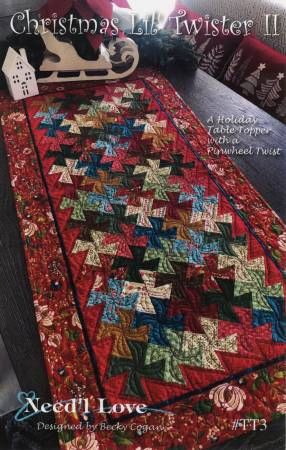 From Need'L Love By Cogan, Becky In Placemats, Table Runners & Toppers A holiday table topper with a pinwheel twist. The Lil Twister Tool by Twister Sisters is required to complete these pinwheel blocks. This is a refresh of Christmas Lil Twister from 2014 (TT1) Printed Paper Pattern Final Product: Table Topper Finished Size 24in x 51in Technique Used: Standard Machine Sewing Templates Included: No, please purchase the Lil Twister Tool Skill Level: Confident Beginner