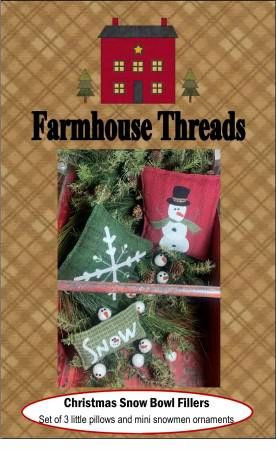 From Farmhouse Threads Inc By McCray, Rhonda In Craft Wool applique and hand embroidery with button and bead embellishments, set of 3 snow related little pillows to fill a bowl. Measure approximately 5-7" each Printed Paper Pattern Finished Size: 5in - 7in each Final Product: Craft Paper Templates Included Technique Used: Wool Applique / Hand Embroidery Skill Level: Confident Beginner