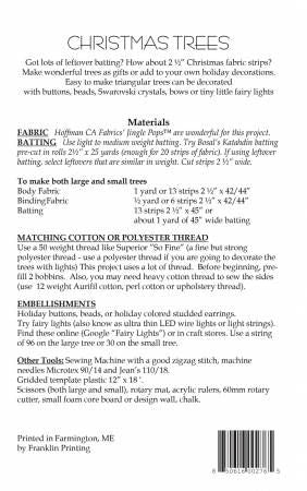 Great little holiday treat. Decorate this with holiday buttons, beads or with “fairy lights” which easily slip through the zigzag stitches. Uses Bosal new pre-cut rolls of Katahdin Cotton Batting