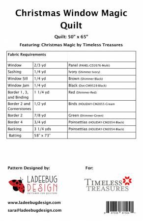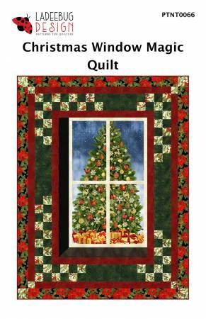 From Ladeebug Designs In Quilts Features Timeless Treasures' Christmas Magic collection. Finished size: 50" x 65". This Christmas attic window quilt is quick and easy to put together. Grid the window and then add a "cheater" square in the corner of the sill and jam. There are no difficult miters or "y" seams. A 4-patch block and series of borders finish off the design.