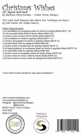 From Coach House Designs By Cherniwchan, Barbara In Quilts 48" square Christmas Wallhanging. Center house motif is partly pieced and part applique and is surrounded by pieced trees and stars. Printed Paper Pattern Finished Size: 48in x 48in Final Product: Wall Hanging Technique Used: Applique Skill Level: Intermediate
