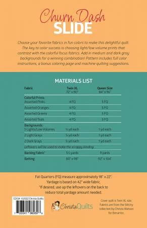Choose your favorite fabrics in fun colors to make this delightful quilt. The key to color success is choosing light/low volume prints that contrast with the colorful focus fabrics. Add in medium and dark gray backgrounds for a winning combination! Pattern includes full color instructions, a bonus coloring page and machine quilting suggestions. Printed Paper Pattern Finished Size: 72in x 90in & 84in x 96in Final Product: Quilt Technique Used: Standard Machine Sewing Skill Level: Intermediate