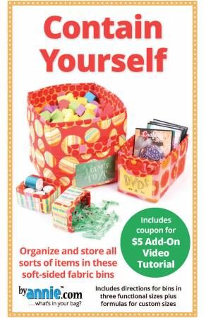 Make these soft-sided fabric bins in your favorite fabrics and colors to organize and store all sorts of treasures. The pattern includes complete instructions for containers in three fun sizes with optional labels and handles. Each size is designed to coordinate well with standard sized cube shelves, allowing you to not only become more organized, but to also decorate your room. Once you’ve mastered the technique, design your own bins of any size using the handy formulas and tips included in the pattern. You’ll love having custom containers for all your storage needs! NOTE: Depending on the size of bin that you design, additional fabric, Soft and Stable, interfacing, and vinyl may be required. See pattern for details. Full instructions for bins in these sizes are included in pattern: Small: 2-3/4in H x 4-1/2in W x 3-1/2in D Medium: 6in H x 6in W x 10-1/2in D Large: 11-1/4in H x 11-1/2in W x 11-1/2in D