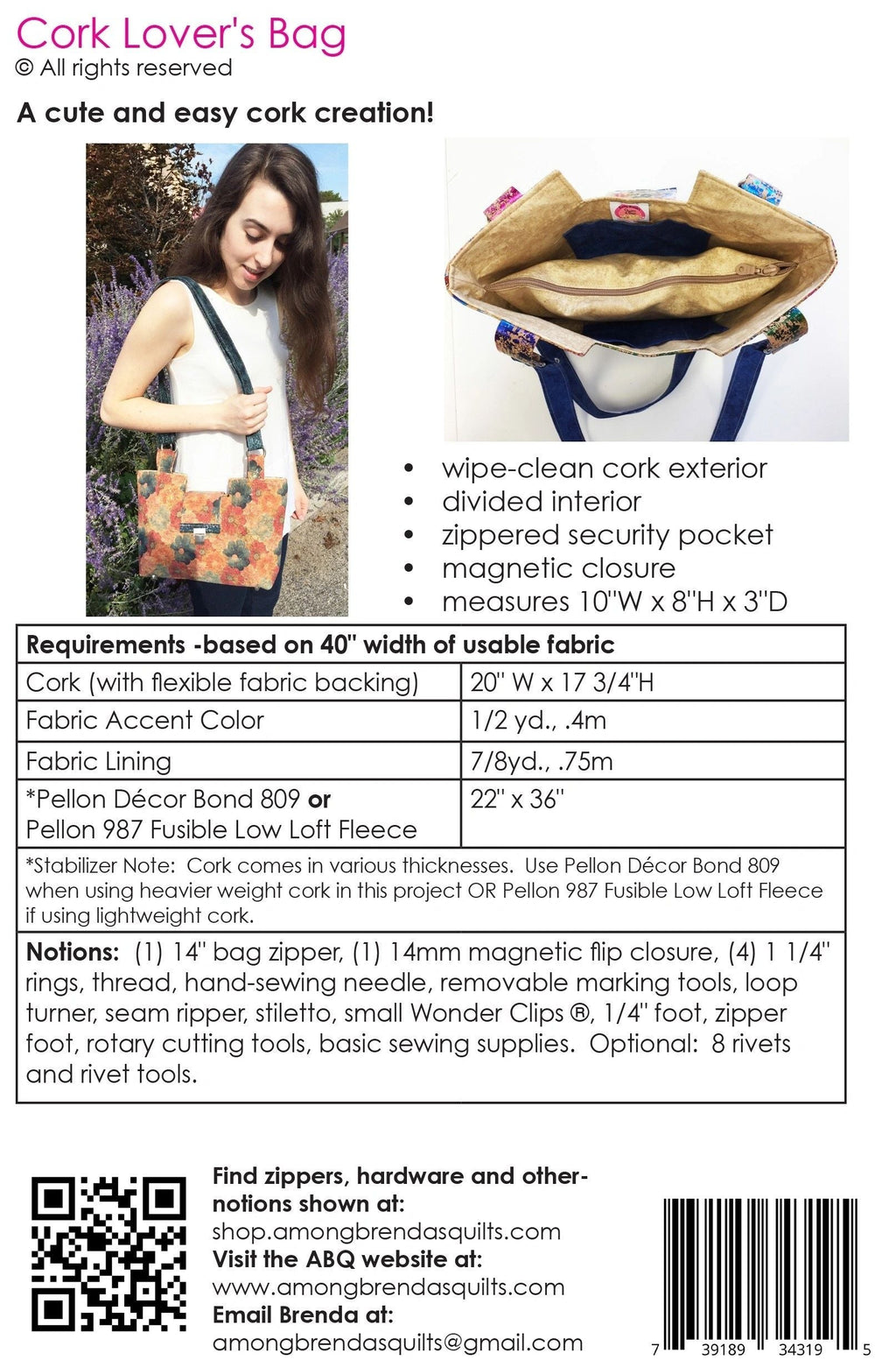 From Among Brenda's Quilts & Bags In Bags, Purses, Totes & Electronic Covers A cute and easy cork creation. Enjoy the wipe clean exterior, divided interior, zippered security pocket, bag feet and magnetic closure. Measures 10"W x 8"H x 3"D.