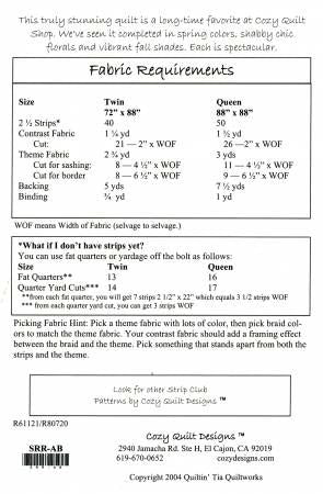 From Cozy Quilt Designs By Stout, Daniela In Quilts Autumn Braid - A Strip Club Pattern Designed for 2½" Strips. This truly stunning quilt is a long-time favorite at Cozy Quilt Shop. We've seen it completed in spring colors, shabby chic florals and vibrant fall shades. Each is spectacular. The pattern includes instructions for: Twin 72in x 80in Queen 88in x 80in
