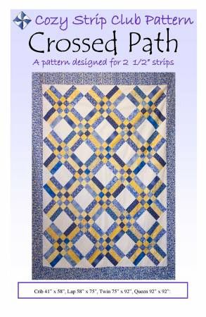 From Cozy Quilt Designs By Stout, Daniela In Quilts Crossed Path - A Strip Club Pattern Designed for 2½" Strips. This quilt is as simple as a nine-patch, a split rail fence and a setting square. In our sample, we chose the classic combination of blue and yellow as our darks and lights. The pattern includes instructions for: Crib Lap Twin Queen