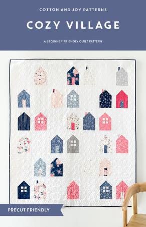 From Cotton and Joy By Gulick, Fran In Quilts The Cozy Village Quilt by Fran Gulick of Cotton and Joy is 10" stacker friendly and features pieced house blocks. Pattern is beginner friendly and includes multiple sizes (baby, throw, and queen) Printed Paper Pattern Finished Size: 58in x 69in Final Product: Quilt Technique Used: Standard Machine Sewing Skill Level: Beginner