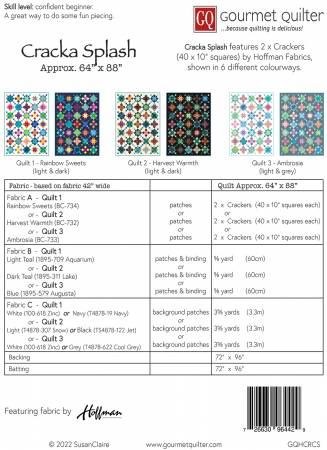 From Gourmet Quilter In Quilts It is so much fun using pre-cuts! In this case, pre-cut 10" squares are used for this delightfully pieced quilt. Featuring Cracker (pre-cut 10" squares) by Hoffman Fabrics, this quilt measures approx. 64" x 88". Shown in several colour options. Printed Paper Pattern Finished Size: 64in x 88in Final Product: Quilt Technique Use: Standard Machine Sewing Skill Level: Confident Beginner