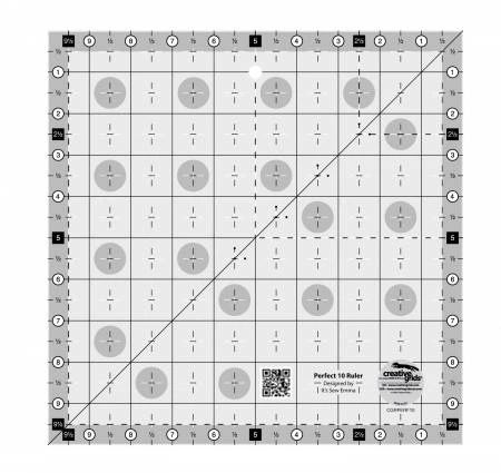From Creative Grids USA By It's Sew Emma BF2024 Collection In Rulers & Accessories This item has a MAP (Minimum Advertised Pricing) Policy. Please do not advertise it for less than $28.49. Cut a variety of popular shapes from precut 10in squares or from your stash. Easy to read black and white markings. Cut around the square to create your own 10in squares from your stash. 1/2in grid covers the entire square. 2-1/2in squares and strips, 5in squares and strips, and 9-1/2in squares are highlighted. 45 degree line makes quick work of trimming half-square triangle blocks. Comes with fully illustrated step by step instructions. Scan the QR Code printed on the instructions to view a how-to video of these features and to see the patterns that can be made with this ruler. Ruler slides easily over the fabric until pressure is applied. Then our exclusive grip holds the fabric in place while cutting, eliminating slipping and miss-cuts. Total Size – 10in x 10in Creative Grids® Rulers are made in the USA and sold through independent quilt shops as well as select online retailers. Creative Grids® products have a MAP/IMAP (Minimum Advertised Price/Internet Minimum Advertised Price) Policy. Please do not advertise them for less than the suggested retail price.