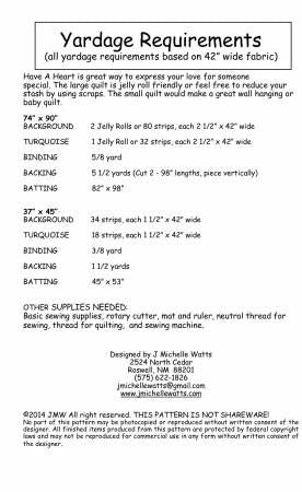 From J Michelle Watts Designs In Quilts Cross Your Heart represents faith and love. The pattern includes instructions for both a 74" x 90" and a 37" x 45". The 74" x 90" is a jelly roll friendly project. The 37" x 45" is a great scrap reducing project. This project would make a great wedding quilt or baby quilt. It's a Fast and Fun strip piecing project.