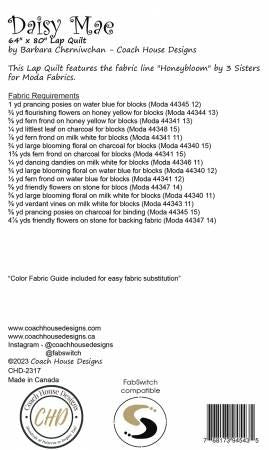 From Coach House Designs By Cherniwchan, Barbara In Quilts 64" x 80" lap quilt with large floral blocks. Shown in Honeybloom by 3 Sisters, this project is suitable for any fabric. FabSwitch Compatible. Printed Paper Pattern Finished Size: 64in x 80in Final Product: Quilt Technique Used: Standard Machine Sewing Skill Level: Confident Beginner