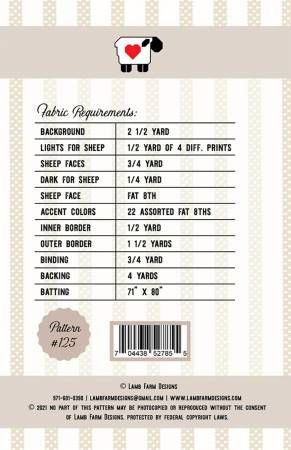 From Lamb Farm Designs By Lamb, Jennie Jo In Quilts 62 1/2" x 71 1/2" quilt. Perfect size for a throw or bed quilt. 12 different right facing sheep and 12 different left facing sheep. All machine pieced and no applique. Can use a 10" squares pack for the sampler blocks. Make as many black sheep as you want! This pattern works wonderful for a block of the month. Pattern is suitable for a confident beginner. Directions are step by step with great graphics and all pressing directions included. Printed Paper Pattern Finished Size: 62-1/2in x 71-1/2in Final Product: Quilt Technique Used: Standard Machine Sewing Skill Level: Confident Beginner