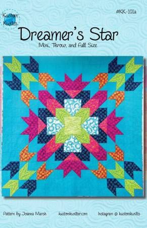 From Kustom Kwilts By Marsh, Joanna In Quilts The Dreamer’s Star Quilt Pattern features 3 different sizes included in the instructions. The simple, yet bold design allows you to build your sewing and quilting skills, while still providing a big impact. Try this pattern with complimentary solids, or play with scrappy variations. The possibilities are truly endless with this pattern. -8.5" x 5.5" booklet pattern includes a coloring page for each option and fabric amounts required for each size. -The finished size options include a mini quilt at 24" x 24", medium lap size at 64" x 64", and large at 80" x 80". -Skill level is beginner-intermediate. -Pattern includes a step-by-step tutorial for creating eight half-square triangle units at once. -Fabric requirements are listed included. Printed Paper Pattern Finished Size: Multiple Final Product: Quilt Paper Templates Included Technique Used: Standard Machine Sewing Skill Level: Confident Beginner