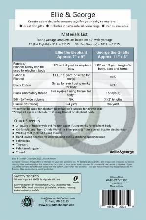 Make these adorable baby toys for your little one or as baby gifts. Includes instructions, templates and 2 silicone rings to make Ellie the Elephant and George the Giraffe. Silicone rings are made from 100% baby-safe food grade silicone that have been safety-tested to be free of BPA, phthalates and other harmful materials. Printed Paper Pattern Finished Size: 11in x 6in & 7in x 9in Final Product: Craft / Toy / Doll Paper Templates Included Technique Used: Standard Machine Sewing Skill Level: Intermediate