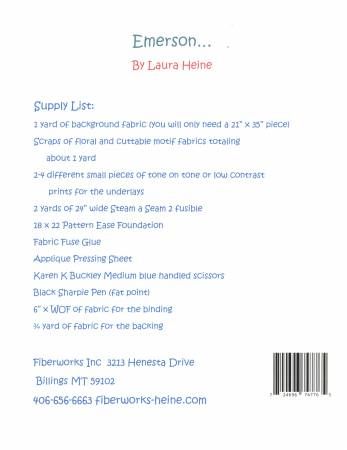 From Fiberworks Inc By Heine, Laura In Quilts Emerson puppy collage pattern by Laura Heine is a great beginner collage pattern. Includes full sized pattern and step by step color instructions on how to complete the quilt. Size 21 x 35.