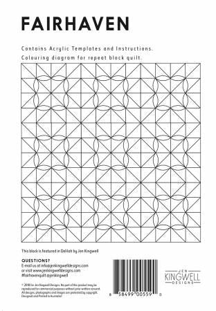 From Jen Kingwell Designs By Kingwell, Jen In Quilts Finished block measures 12in (12 1/2in including seam allowance). The single block acrylic template set includes instructions on how to complete this block. The pattern is written for hand piecing but as the acrylic templates include a 1/4in seam allowance, it can be machine pieced. Skill level : Beginner-Intermediate