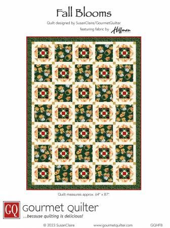 From Gourmet Quilter In Quilts This quilt features some delicious Fall Blooms fabrics by Hoffman Fabrics. The quilt is pieced and measures approx. 64" x 87" Printed Paper Pattern Finished Size: 64in x 87in Final Product: Quilt Paper Templates Included Technique Used: Standard Machine Sewing Skill Level: Confident Beginner