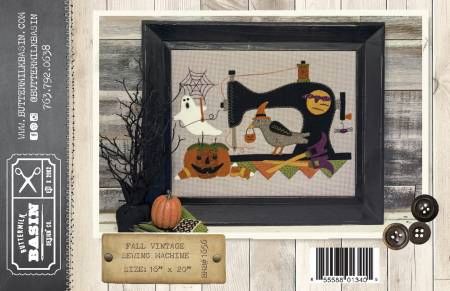 From Buttermilk Basin By West, Stacy In Wool These seasonal, vintage sewing machines in wool applique are sure to be a hot seller! Would look great done it cotton applique or made into a wall hanging! SEW FUN! Size is 16in x 20in framed.