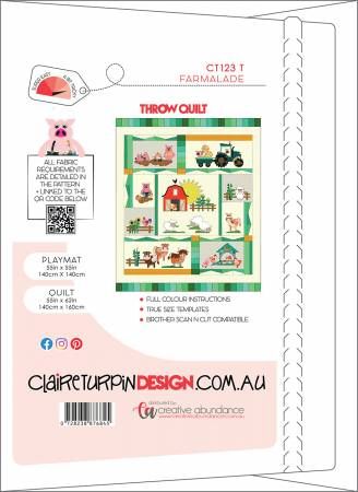 From Creative Abundance By Turpin, Claire In Quilts Farmalade is a fabulous applique' pattern that has instructions for both a playmat and a quilt. Sewing Level: Intermediate This applique pattern includes a layout for a playmat and a quilt. Playmat Size:55" x 55" (140cm x 140cm) Quilt Size:55" x 62" (140cm x 160cm Pattern includes: Acrylic Pick & Mix Template Full colour instructions True Size Tempates Full Size layout guides Brother Scan N Cut Compatible Printed Paper Pattern Finished Size: 55in x 55in Final Product: Quilt Paper Templates and Acrylic Templates Included Technique Used: Applique Skill Level: Intermediate