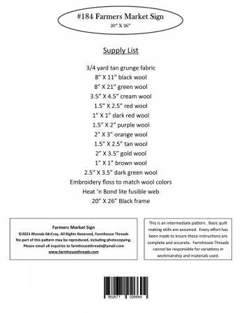 From Farmhouse Threads Inc By McCray, Rhonda In Wall Hanging Wool applique and hand embroidery on cotton in 20" X 26" frame, or add a border to turn into a wall quilt. Printed Paper Pattern Finished Size: 20in x 26in Final Product: Wall Hanging Paper Templates Included Technique Used: Applique / Hand Embroidery / Stitchery Skill Level: Confident Beginner