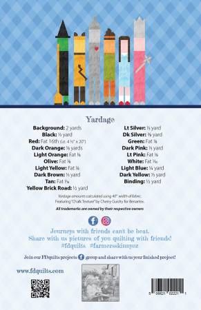 From Farmer's Daughters By Ottesen, Sarah and Travis, Susan In Quilts Farmer’s Skinny Oz pattern is a tribute to one of the Farmer’s favorite stories, The Wonderful Wizard of Oz. This quilt goes together surprisingly quick and is perfect for a lap quilt or wall hanging with a finished size of 58” x 58”. The quilt is a great skill builder. The quilter will be creating half square triangles, flying geese, and blocks using diagonal seams. A confident beginner quilter will enjoy creating these iconic characters in a quilt! The pattern is printed in full color with easy to follow instructions and graphics. Printed Paper Pattern Finished Size: 58in x 58in Final Product: Quilt Technique Used: Standard Machine Sewing Skill Level: Confident Beginner