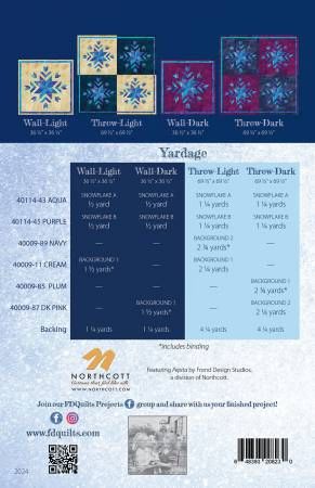 From Farmer's Daughters By Ottesen, Sarah and Travis, Susan In Quilts First Snowfall pattern includes instructions for two sizes, 36.5" x 36.5" Wall Hanging and 69.5" x 69.5" Lap Size Quilt. Quilters of all skill levels will enjoy piecing this quilt! The pattern is printed in full color with easy-to-follow instructions and graphics. It even has instructions for mitered borders! Printed Paper Pattern Finished Size: 69-1/2in x 69-1/2in Final Product: Quilt Technique Used: Standard Machine Sewing Skill Level: Confident Beginner